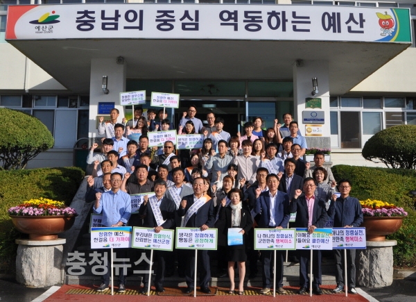 지난 6일 국민권익위원회에서 발표한 ‘2017년도 공공기관 청렴도 측정 결과’에 따르면 예산군은 외부청렴도 8.03점, 내부청렴도 7.95점으로 종합청렴도에서 전년대비 0.39점 향상된 8.00점을 달성해 각 분야별 모두 2등급을 받는 등 고른 성과를 거뒀다. 충남도내에서는 15개 시·군 중 1위이며, 전국 기초자치단체(군) 82개 평가대상(평균 7.54) 중 7위로 우수한 평가를 받았다.
