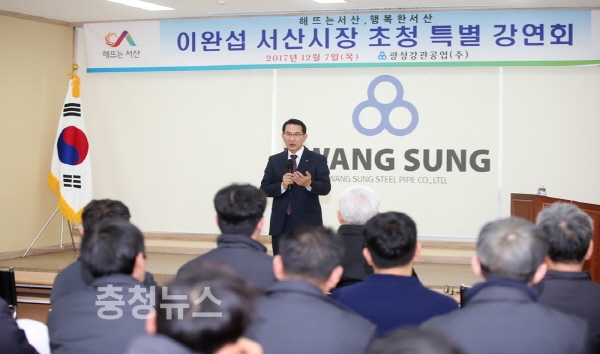 이완섭 시장은 7일 서산인더스밸리 내에 위치한 광성강관공업을 방문해 회사 임직원을 대상으로 특별한 강연회를 가졌다.