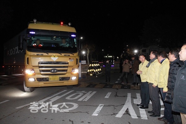 이재관 권한대행은 이날 새벽 한국원자력연구원을 방문해 방사성폐기물 반출 준비사항을 점검하고 관계자들을 격려하고 “금년도 계획물량을 연말까지 차질 없이 반출해 시민과의 약속을 반드시 이행해야 한다”고 강조했다.