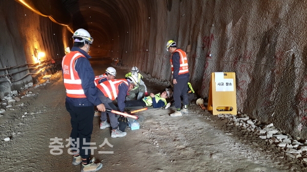 이번 훈련은 철도건설현장에서 지진으로 발생할 수 있는 터널 내 낙반으로 인한 인명피해가 발생한 상황을 가정해,