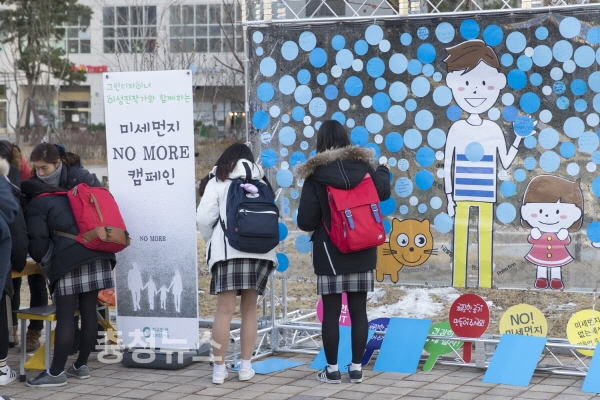 캠페인에 참여한 노소진 학생(봉사동아리 학생 회장)은 “캠페인을 통해 미세먼지 문제의 심각성을 시민들에게 알릴 수 있어서 뿌듯했다. 앞으로도 미세먼지를 줄이기 위한 학생 활동을 이어나가고 싶다”고 말했다.
