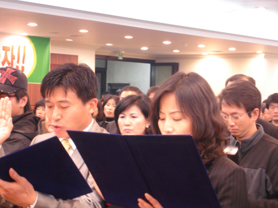먼저 연단에 오른 이현 예비후보는 당내 경선과 본선에서 깨끗한 선거를 실천하겠다 며 그동안 민주 사회를 위한 변호사 모임을 15년동안 이끌면서 회장까지 역임했다고 소개했다.