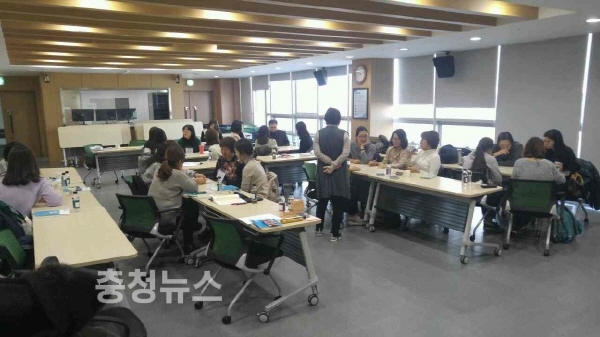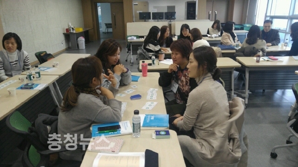강의와 대화 실습으로 진행되는 비폭력대화 연수는 25명이 한 팀을 이루어 3팀이 각각 3시간씩 5회, 15시간씩 진행되고 있다.