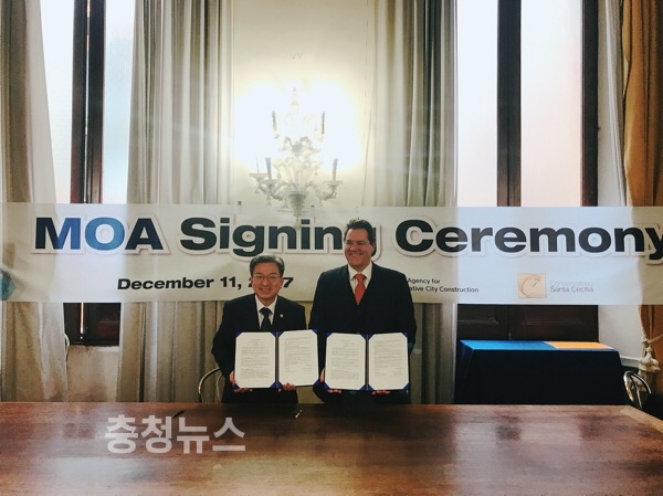 이원재 행복청장이 지난 11일 이탈리아 로마에 위치한 산타체칠리아음악원을 방문하여 로베르토 줄리아니(Roberto Giuliani) 총장과 ‘산타체칠리아음악원 세종 분교’의 2019년 개교를 합의하고, 법적 구속력 있는 협약(MOA)을 체결하였다.