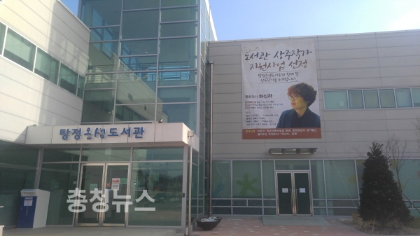 탕정온샘도서관에 게시된 도서관상주작가지원사업 홍보 현수막