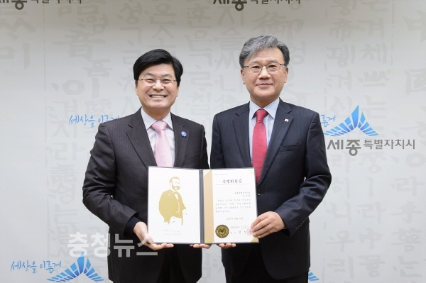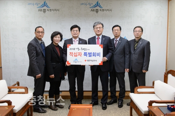 세종시(시장 이춘희)는 13일 청사 내 접결실에서 대한적십자사 대전·세종지사(회장 정상철)에 2018년도 적십자 특별회비 300만 원을 전달했다.