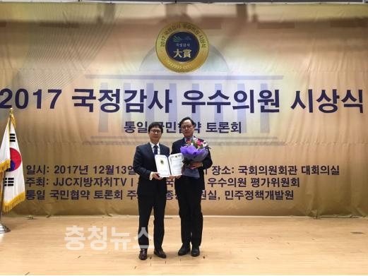 국회 행정안전위원회 자유한국당 이명수 의원(충남 아산갑)이 13일 JJC지방자치TV 주최로 국회 의원회관 대회의실에서 열린 「2017년 국정감사 우수의원 시상식」에서 국정감사 우수의원상을 수상했다.