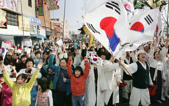 대전시 동구(구청장 이장우)는 15일 오후 2시 인동 쌀 시장 앞(전기안전공사앞)에서 이장우 동구청장, 송성락 동구의회 의장, 독립유공자 이두일옹, 주민․학생 등 2천여명이 참석한 가운데 인동장터 독립만세운동 재현행사를 개최했다.