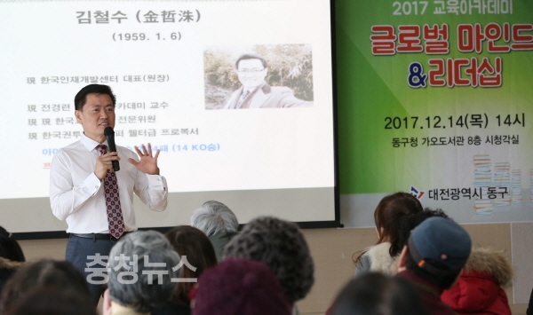대전 동구(구청장 한현택)는 14일 구청 시청각실에서 2017년 교육아카데미 ‘글로벌 마인드와 리더십’ 특강을 개최했다.