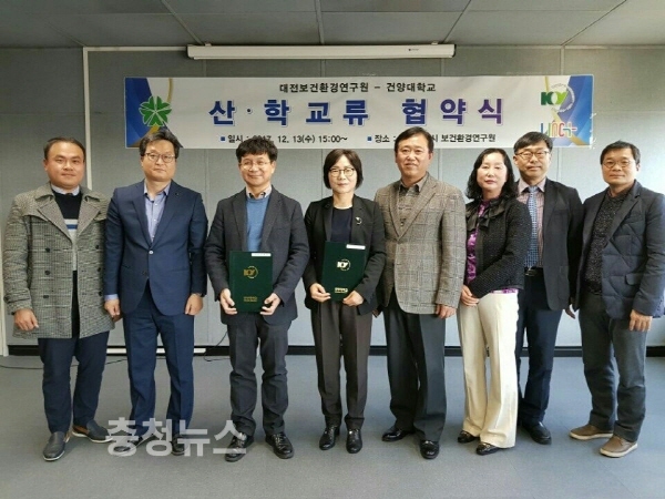 건양대학교(총장 정연주) LINC+사업단(단장 김영일)과 대전보건환경연구원(원장 이재면)은 지난 13일 오후 대전 보건환경연구원에서 학생들에게 양질의 현장실습처를 제공하고 연구분야의 확산과 공유를 목적으로 하는 산·학교류 협약을 체결했다.