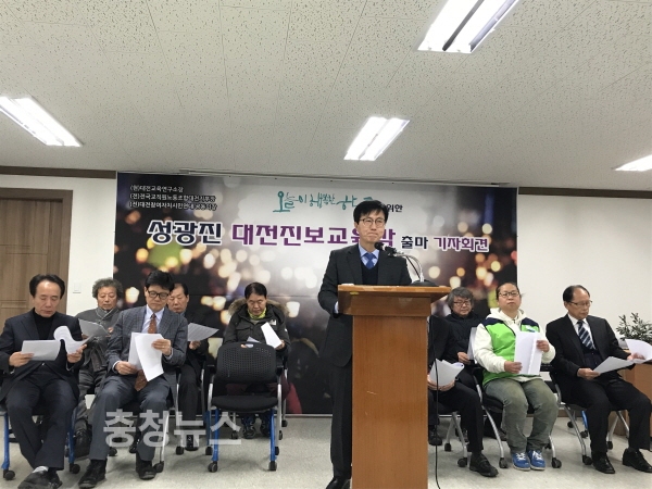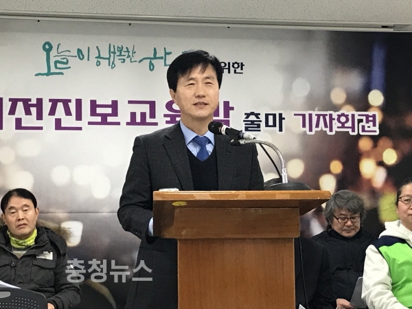그는 14일 전교조대전지부에서 열린 진보교육감 출마 기자회견에서 이와 같이 말했다.