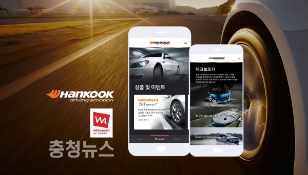 글로벌 선도 타이어 기업 한국타이어(대표이사 서승화)가 운영하는 글로벌 모바일 웹사이트가 14일 한국인터넷전문가협회(KIPFA)가 주최하는 '제14회 웹어워드코리아' 시상식에서 모바일웹 마케팅 부문 제품브랜드 분야 대상을 수상하며 혁신적인 디자인 철학과 커뮤니케이션 역량을 입증했다.