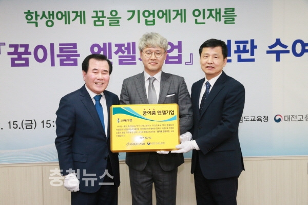 충남교육청(교육감 김지철)은 15일 ‘꿈이룸 엔젤기업’을 선정해 현판수여식을 갖고 대전고용노동청과 업무협약을 체결했다.