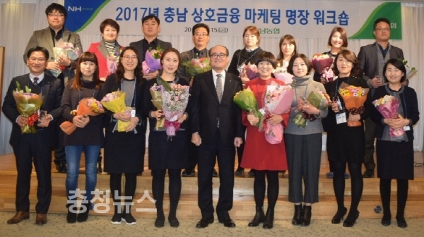 농협 충남지역본부(유찬형 본부장)는 15일 예산 리솜스파캐슬에서 상호금융 각 사업부문별 마케팅 우수직원과 상호금융업무개선실무협의회 위원 등 41명을 대상으로 2017년 충남 상호금융 마케팅 명장(名匠) 워크숍을 실시했다.