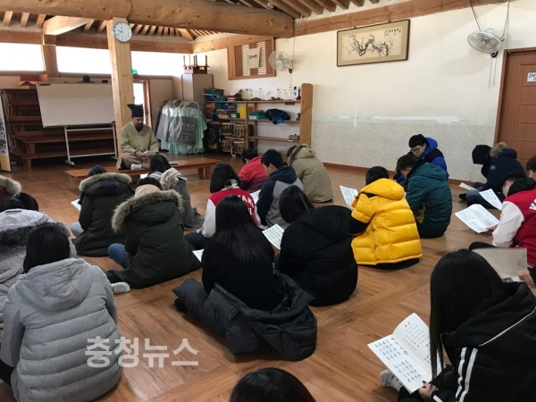 건양대학교(총장 정연주) 국제교육원(원장 정헌식)에서 학업 중인 외국인 유학생 35명이 지난 16일부터 17일까지 공주 도령서당에서 한국서당체험을 진행했다.