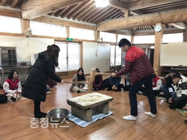 이들 학생들은 충남 공주에 위치한 도령서당에서 1박2일간 머무르며 큰절과 읍절 등 전통 예절을 배우고 학생들이 직접 떡메치기를 경험하며 인절미를 만들어 먹었다.