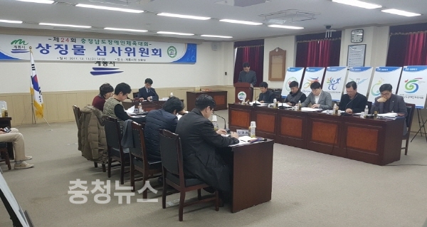 시는 지난 13일 시청 상황실에서 충남장애인체육대회 상징물 심사위원회(위원장 안일선)를 열고 체육대회 상징물 총 8점을 선정했다고 밝혔다.