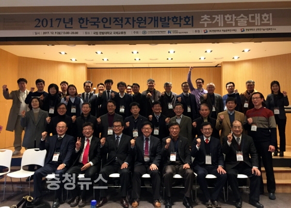 한국인적자원개발학회(회장 최종인 한밭대 교수)가 지난 9일 한밭대 국제교류관에서 ‘과학기술 경쟁력과 인적자원개발’을 주제로 ‘2017년 추계 학술대회’를 개최했다.