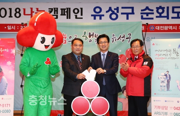 대전 유성구(구청장 허태정)는 20일 구청 대강당에서 대전사회복지공동모금회가 주관하는 ‘희망2018나눔캠페인’ 순회모금을 전개했다.